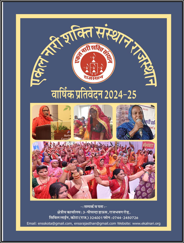 The Annual Reports of the Organization of Strong Women Alone, document the activities of the Organization in the previous 12 months. The Reports also document the results of the work done by the Single Women leaders with and on behalf of Single Women – number of pensions released, number of violence cases solved, number of women breaking/changing cruel customs and traditions, etc. Documentation about training courses held for Single Women leaders, and the numbers of women who participated is also included. The Reports include accounts of special programmes organized during the year – special conventions, the Sisterhood festivals of “bahina dooj”, special community service campaigns undertaken, etc. There are lots of photos, and a few special case studies of successful work and struggle. The reports are in Hindi.